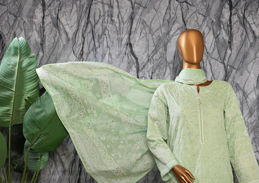 UNSTITCH KHADDAR EMBROIDERED CHIKANKARI with PASHMINA