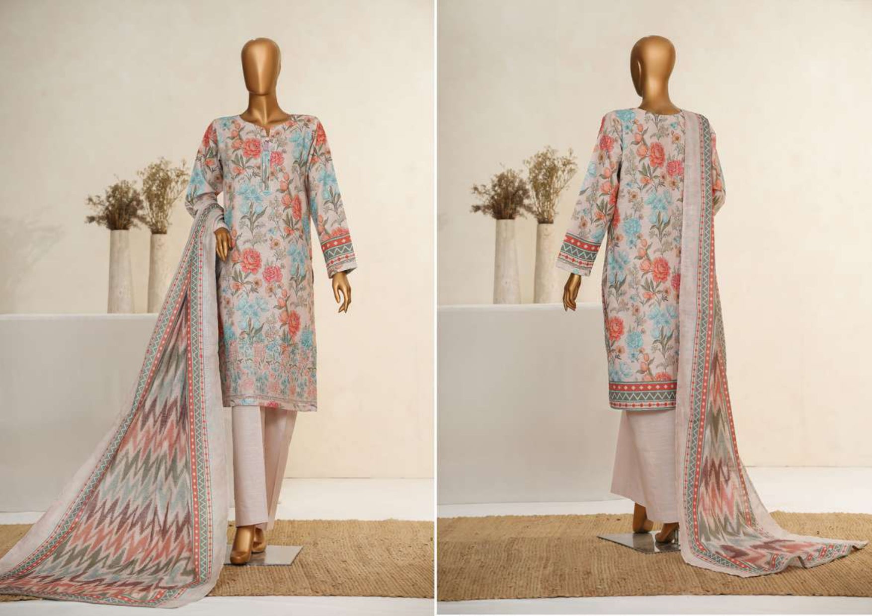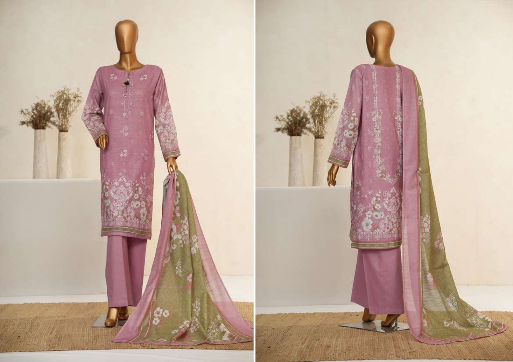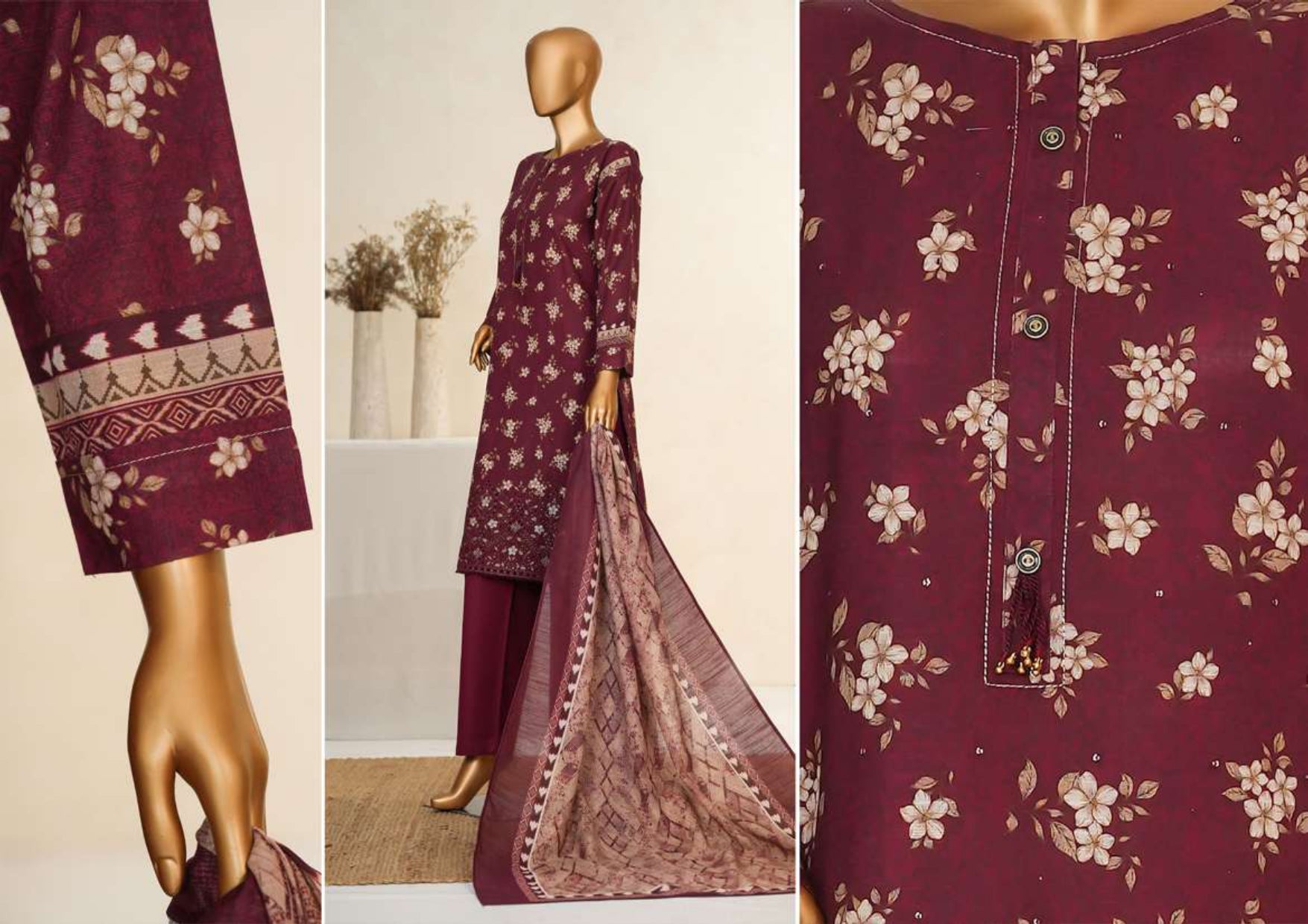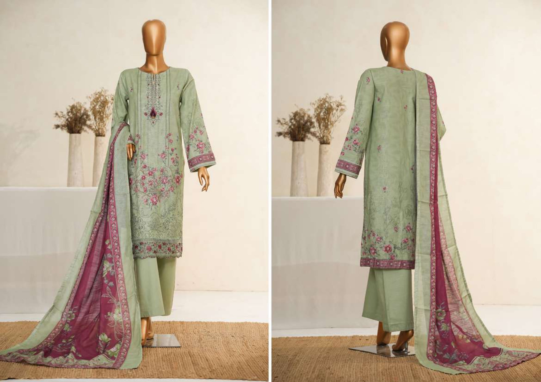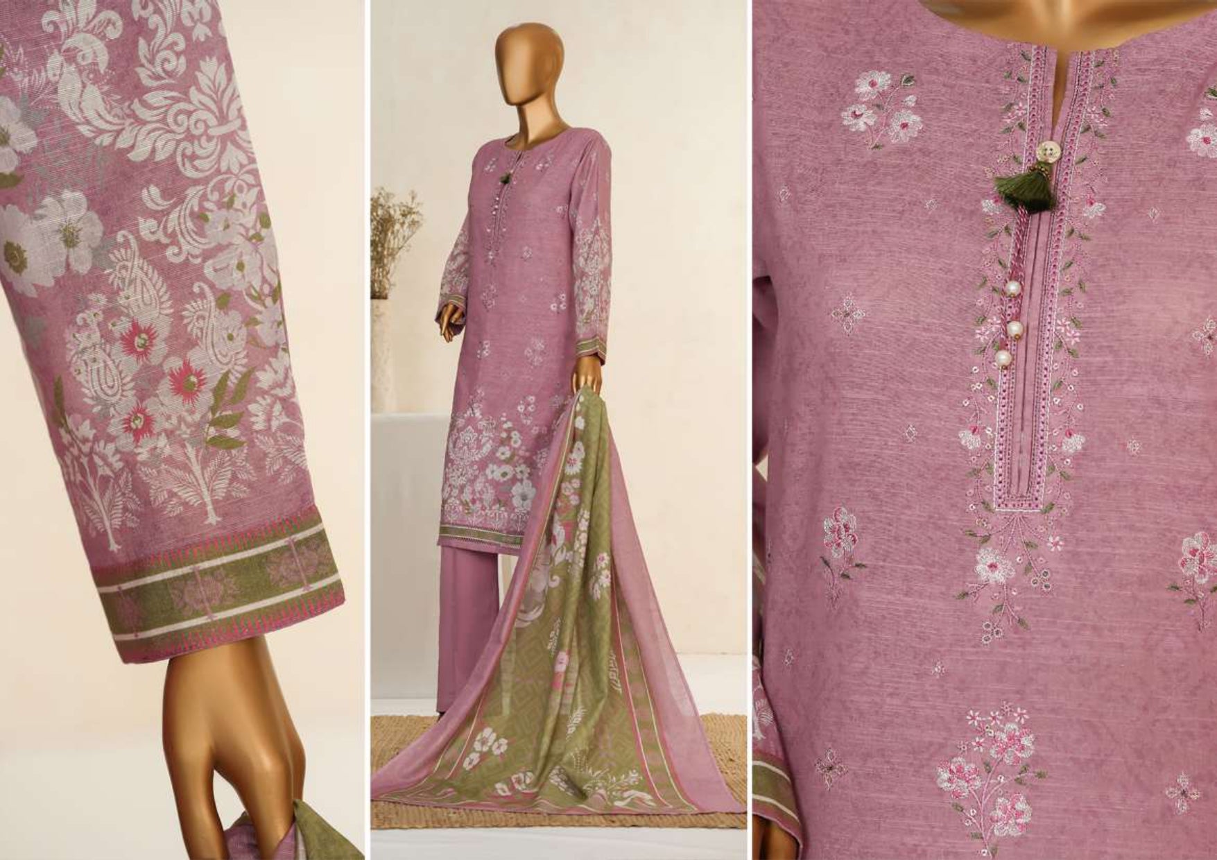 *Digital Printed Embroidered Khaddar Shirt with highlights of Stitching Detail.