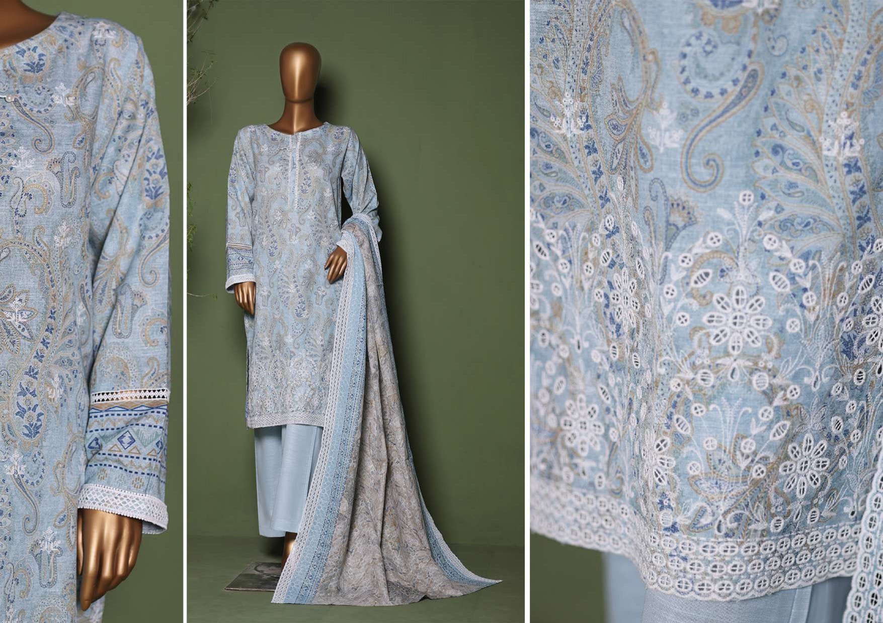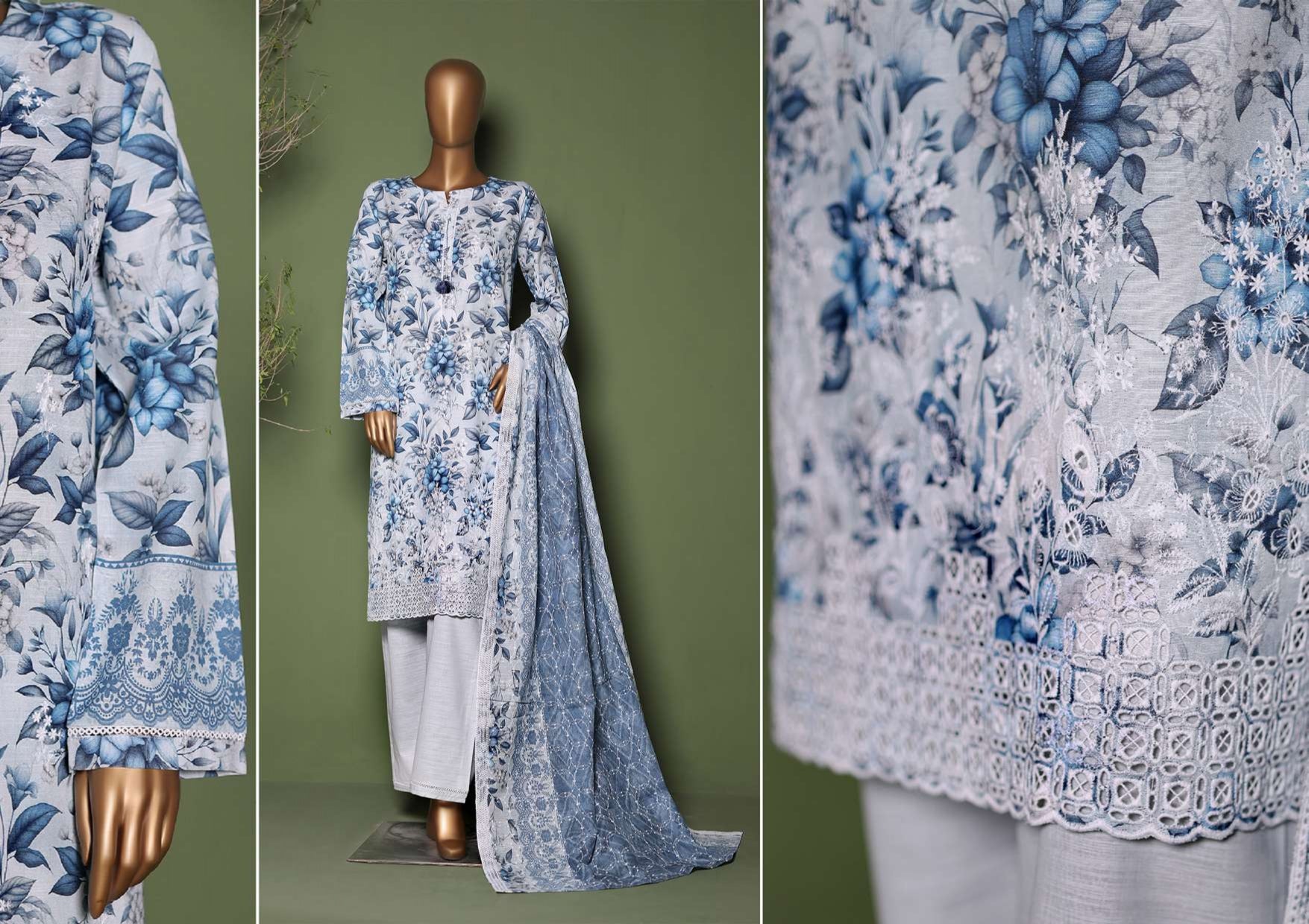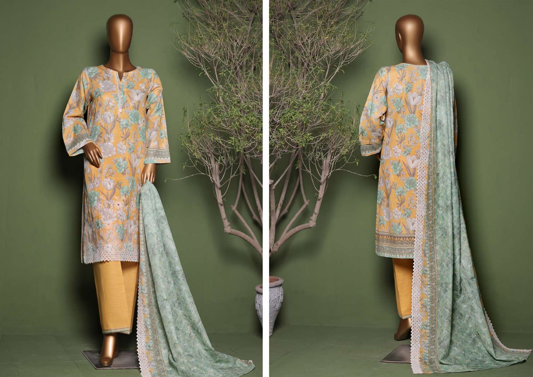 *Printed Embroidered Chikankari Khaddar Shirt with Highlights of Stitching Detail.