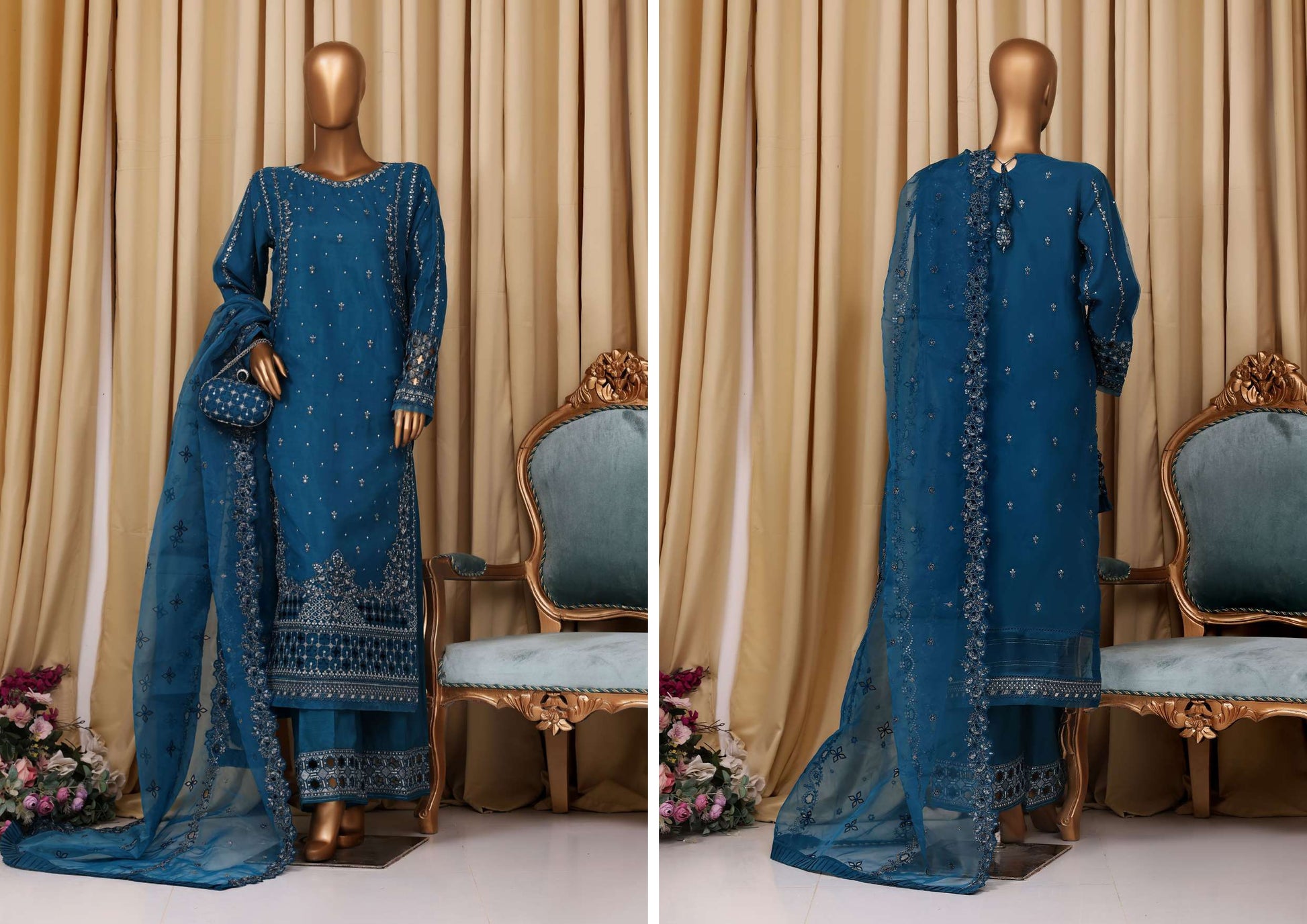 READY TO WEAR FALSAFAA FORMAL EMBROIDERED ORGANZA - 3PC