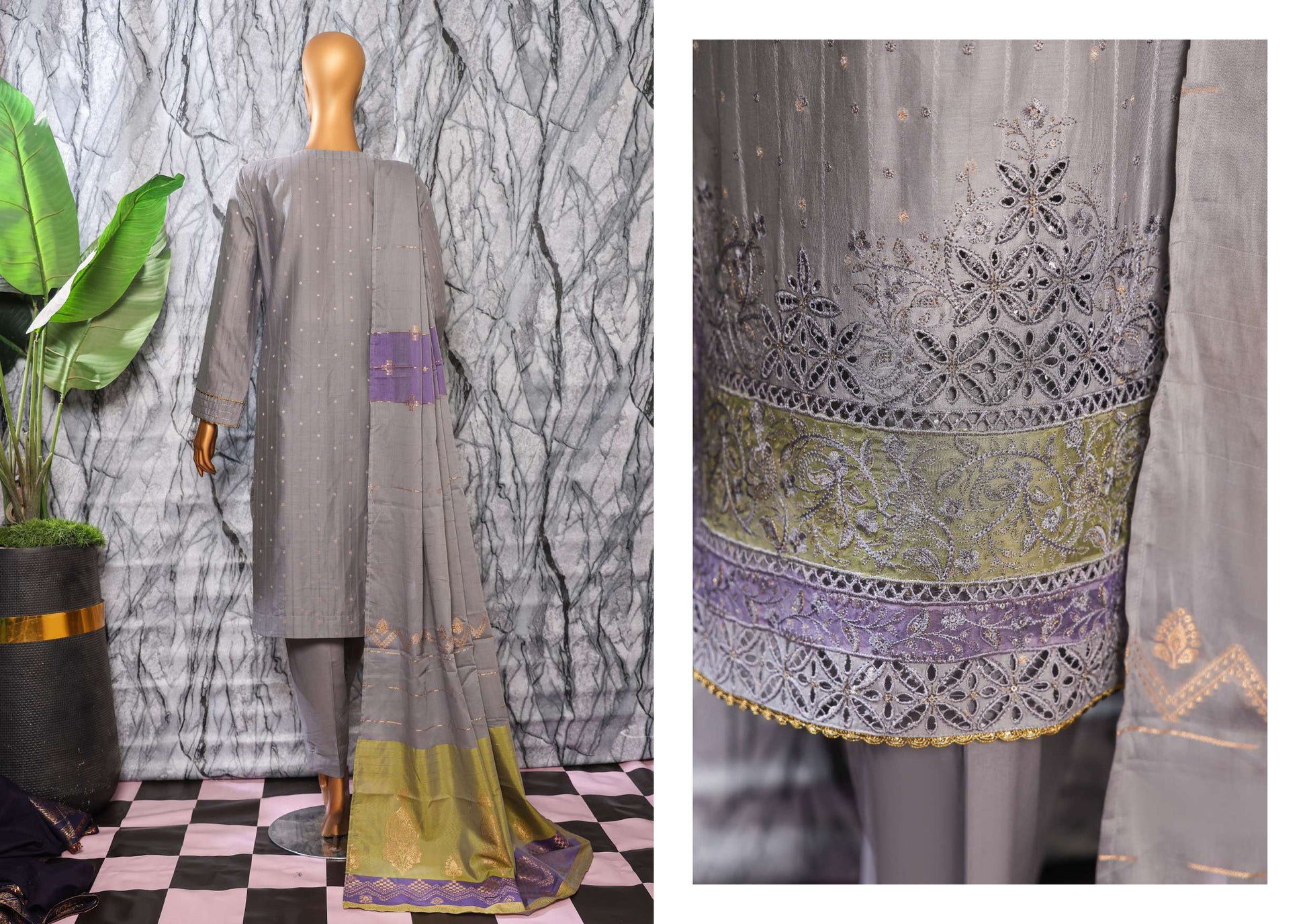Fancy Dyed Ninokara Jacquard Heavy Embroidered Cotton Shirt